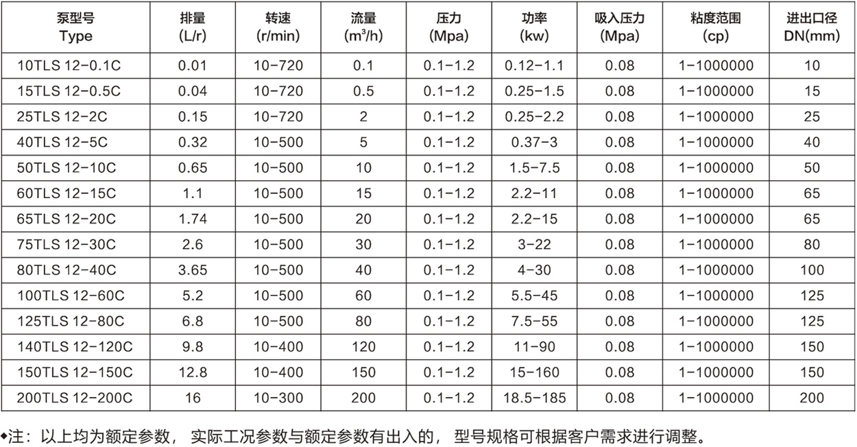 TLS系列轉子泵的制造標準分為衛生級和耐腐蝕型兩大系列;在結構上分為高壓高粘度、高壓低粘度兩大類。